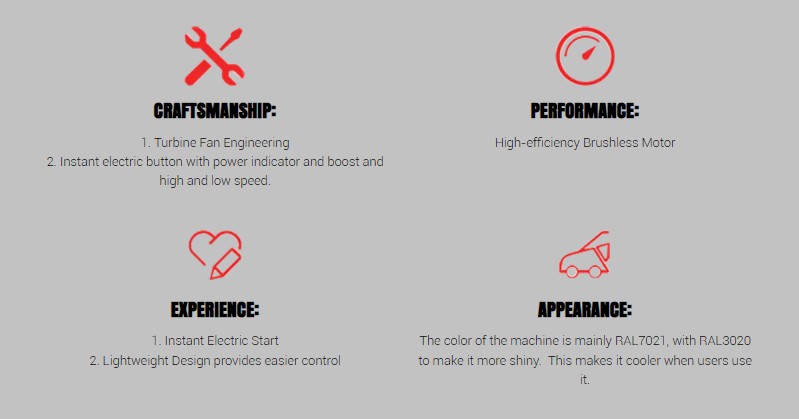 Vận hành ổn định: Động cơ không chổi than hoạt động ổn định, ít tiếng ồn, đảm bảo người dùng có thể vận hành an toàn, thoải mái trong quá trình sử dụng.