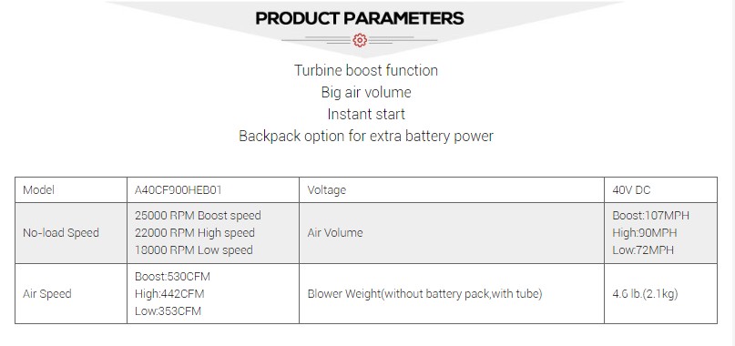 Công nghệ động cơ không chổi than: Chức năng tăng áp của máy thổi lá dùng pin lithium áp dụng công nghệ động cơ không chổi than hiệu quả, giúp điều khiển quạt turbo ở tốc độ cao để tạo ra luồng khí mạnh.