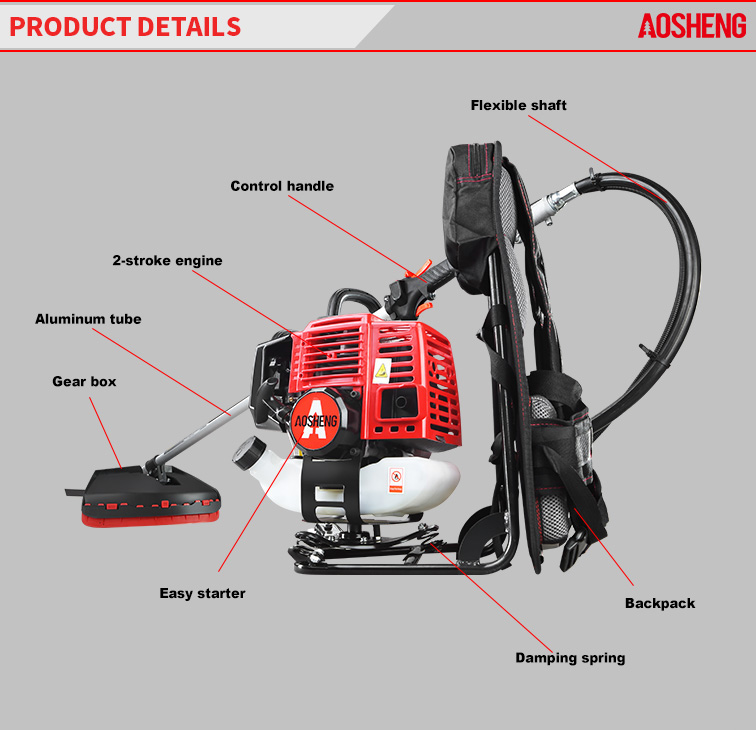 Động cơ hiệu suất cao, dung tích 33CC. Sử dụng chuyên nghiệp mở ra đất hoang Kích thước ống 26mm * 1,5mm, trục linh hoạt chịu lực. Chiều rộng cắt là 420mm Tuổi thọ trên 150 giờ