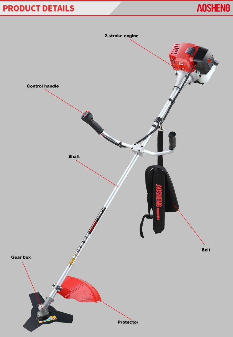 Động cơ 4 thì hiệu suất cao, chuyển vị là 38CC. Sử dụng chuyên nghiệp ở vùng đất hoang mở Kích thước ống 26mm * 1,5mm, trục linh hoạt chịu lực. Chiều rộng cắt là 420mm Tuổi thọ trên 150 gi...