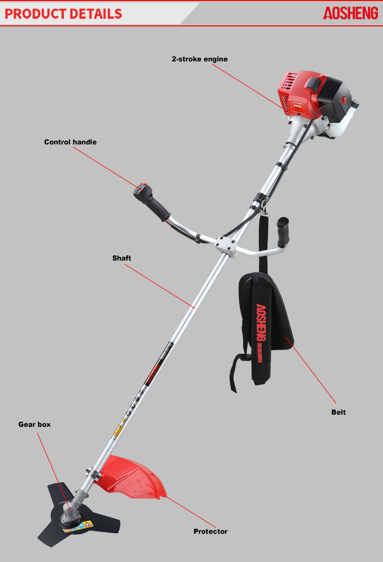 Động cơ 4 thì hiệu suất cao, chuyển vị là 38CC. Sử dụng chuyên nghiệp ở vùng đất hoang mở Kích thước ống 26mm * 1,5mm, trục linh hoạt chịu lực. Chiều rộng cắt là 420mm Tuổi thọ trên 150 gi...