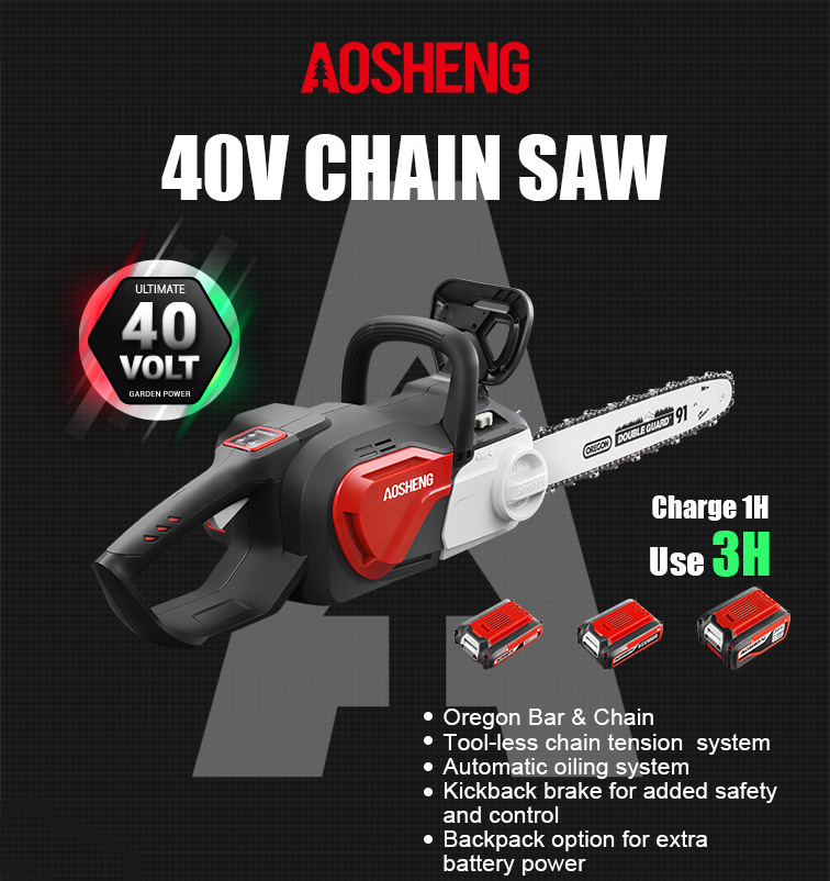 Trang chủ / Sản phẩm / Dụng cụ làm vườn dùng pin lithium / cưa xích / Máy cưa xích lithium-ion A40LJ16B01 40V 16 inch