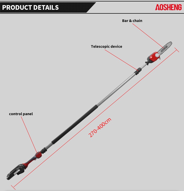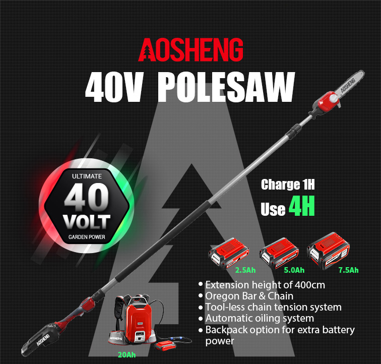 Chiều cao mở rộng 400 cm Quán bar & Chuỗi Oregon Hệ thống căng xích không cần dụng cụ Hệ thống tra dầu tự động Tùy chọn ba lô để có thêm năng lượng pin
